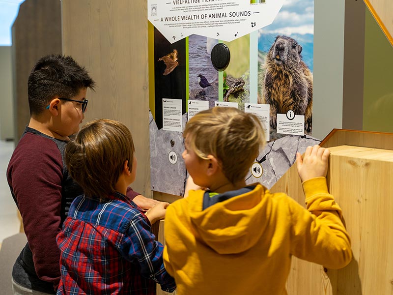 In unserer 300m² großen Ausstellung könnt Ihr außerdem spannenden Sagen vom Piburger See oder der Engelswand lauschen. Oder einen virtuellen Rundflug der Superlative erleben. Setzt Euch dafür die VR- (Virtual Reality) Brille auf und fliegt gemeinsam mit dem mächtigen Bartgeier in die luftigen Höhen des Ötztals. Geschnitzten Holzfiguren wie zum Beispiel Kreuzotter, Tannenhäher, Ameise, Bergschaf und noch viele mehr geben euch einen Einblick in die artenreiche und vielfältige Ötztaler Natur.